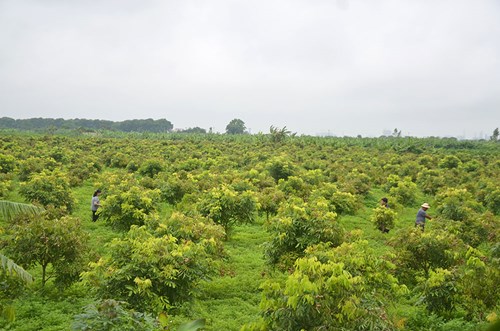 Nằm dọc ven đê sông Hồng trên địa bàn phường Yên Sở (quận Hoàng Mai, TP Hà Nội), 4 héc ta vườn nhãn của gia đình ông Nguyễn Văn Tý (56 tuổi, ngõ 255, Yên Duyên, Yên Sở, Hoàng Mai, Hà Nội) được trồng theo quy trình VietGAP bắt đầu cho quả năm đầu.