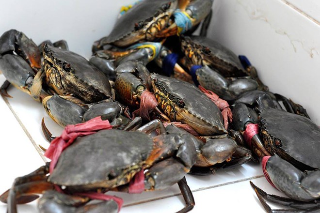 Cua được buộc bằng dây nylon có giá bán cao hơn các loại buộc bằng dây vải. Ảnh: Phan Thảo.