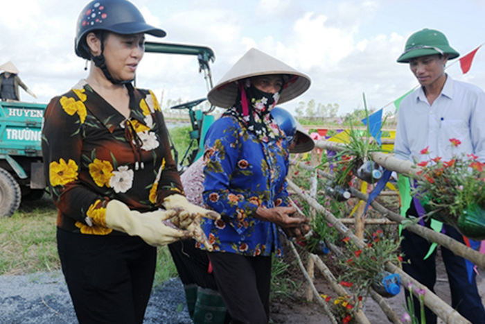 Các cấp Hội đã tập trung tuyên truyền, vận động hội viên, phụ nữ tích cực thực hiện việc duy trì công tác vệ sinh môi trường, đường làng, ngõ xóm, khu phố hàng tuần; xây dựng, duy trì các mô hình “Đoạn đường phụ nữ tự quản”, “Ngày chủ nhật xanh”, “Hàng rào xanh”, “Con đường hoa”... Mỗi xã, phường thực hiện ít nhất một hoạt động thiết thực tham gia xây dựng nông thôn mới, đô thị văn minh như: chỉnh trang vườn hộ, làm nhà tiêu hợp vệ sinh, điểm xử lý rác, mô hình thắp sáng đường quê… Trong năm 2020, các cấp Hội đã vận động cán bộ, hội viên thực hiện 13 công trình, phần việc với số tiền 716 triệu đồng.