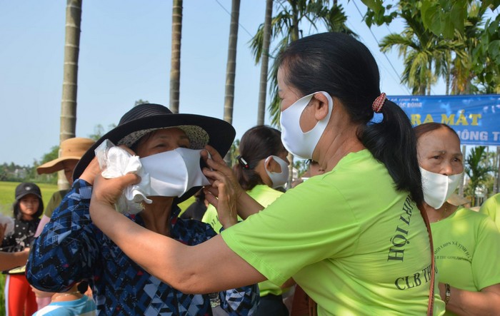 Chị Diệu phát khẩu trang miễn phí cho hội viên phụ nữ trong đợt cao điểm dịch Covid-19