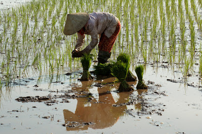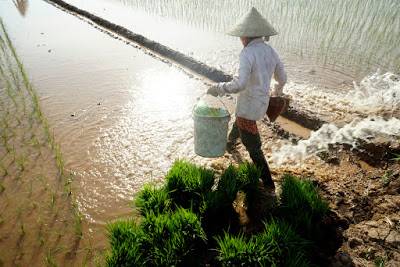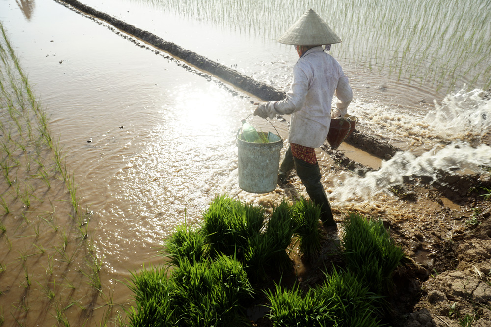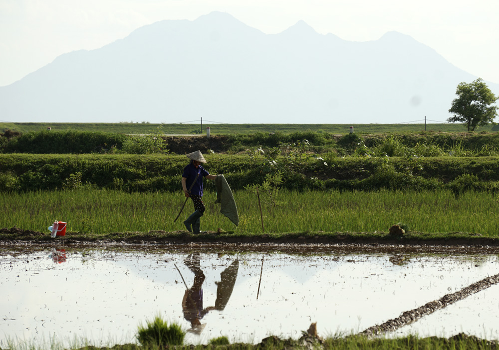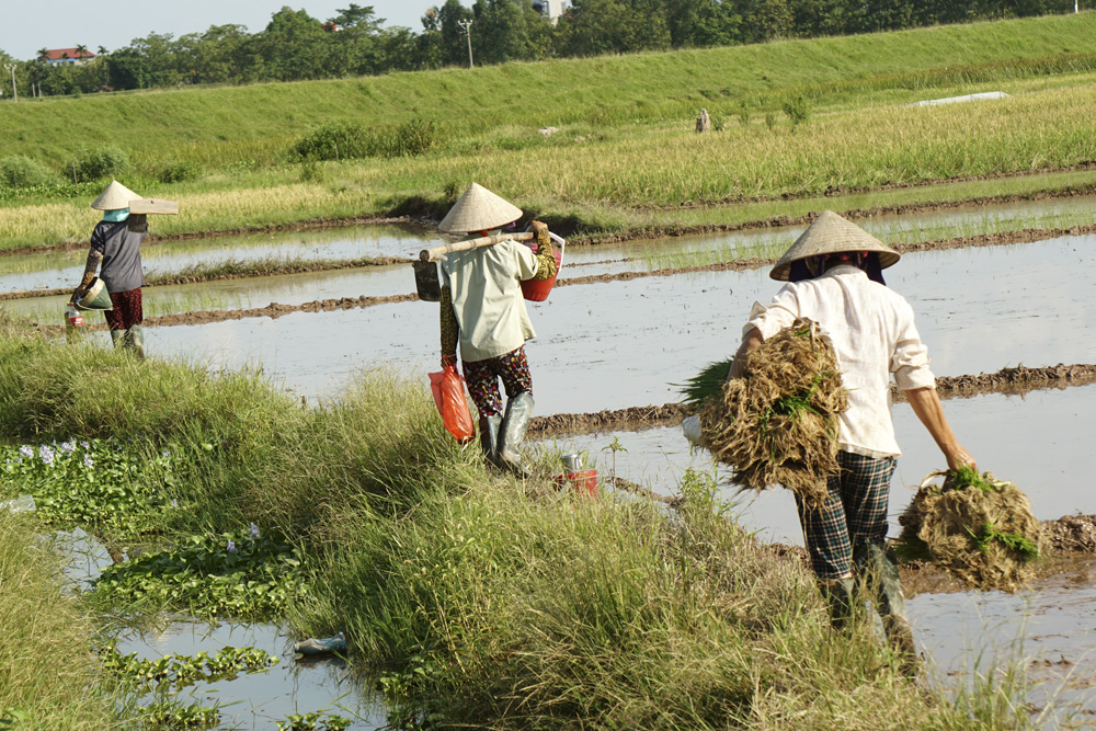 Trên cánh đồng nắng cháy, nhấp nhô những tấm lưng đang cặm cụi với đất, nước và cây lúa... Nắng chiều đã đổ bóng dài trên cánh đồng, bà con nông dân huyện Mê Linh (Vĩnh Phúc) bắt đầu đổ ra đồng bừa đất, cấy lúa cho kịp thời vụ. Dù bắt đầu công việc đồng áng muộn hơn để tránh nóng, song nền nhiệt độ đang cao kỷ lục vẫn thách thức sức chịu đựng của người nông dân.
