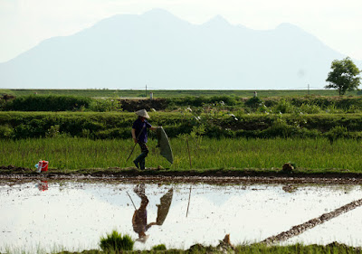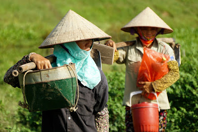 Cho dù buổi chiều ra đồng muộn hơn, nhưng ánh nắng vẫn chói chang chiếu xuống đồng ruộng như thách thức sức chịu đựng của nông dân.