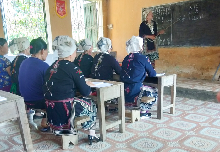 Ban ngày đi làm tối đến cô trò cùng tập trung ở Nhà Văn hoá thôn để học. Lúc đầu khó khăn lắm, vì tay chị em quen làm việc vất vả, cầm bút rất cứng. Trong lớp có những chị đã nhiều tuổi đã cao nên việc tiếp thu càng trở nên khó khăn. Mình phải cầm tay, uốn nắn cho từng người. Chị Vui chia sẻ.